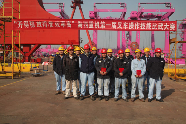 11月底,生產(chǎn)現(xiàn)場(chǎng)氣溫低至-6℃,但驟降的氣溫卻絲毫沒(méi)有影響海西員工的生產(chǎn)熱情。根據(jù)公司“整合企業(yè)資源,抓實(shí)基礎(chǔ)管理”的總要求,公司工會(huì)著眼于叉車工技能水平的檢驗(yàn)與提升,通過(guò)精心策劃,開展了以“開得穩(wěn)放得準(zhǔn) 效率高”為主題的首屆叉車工技能比武大賽,22名職工參加實(shí)操比武。